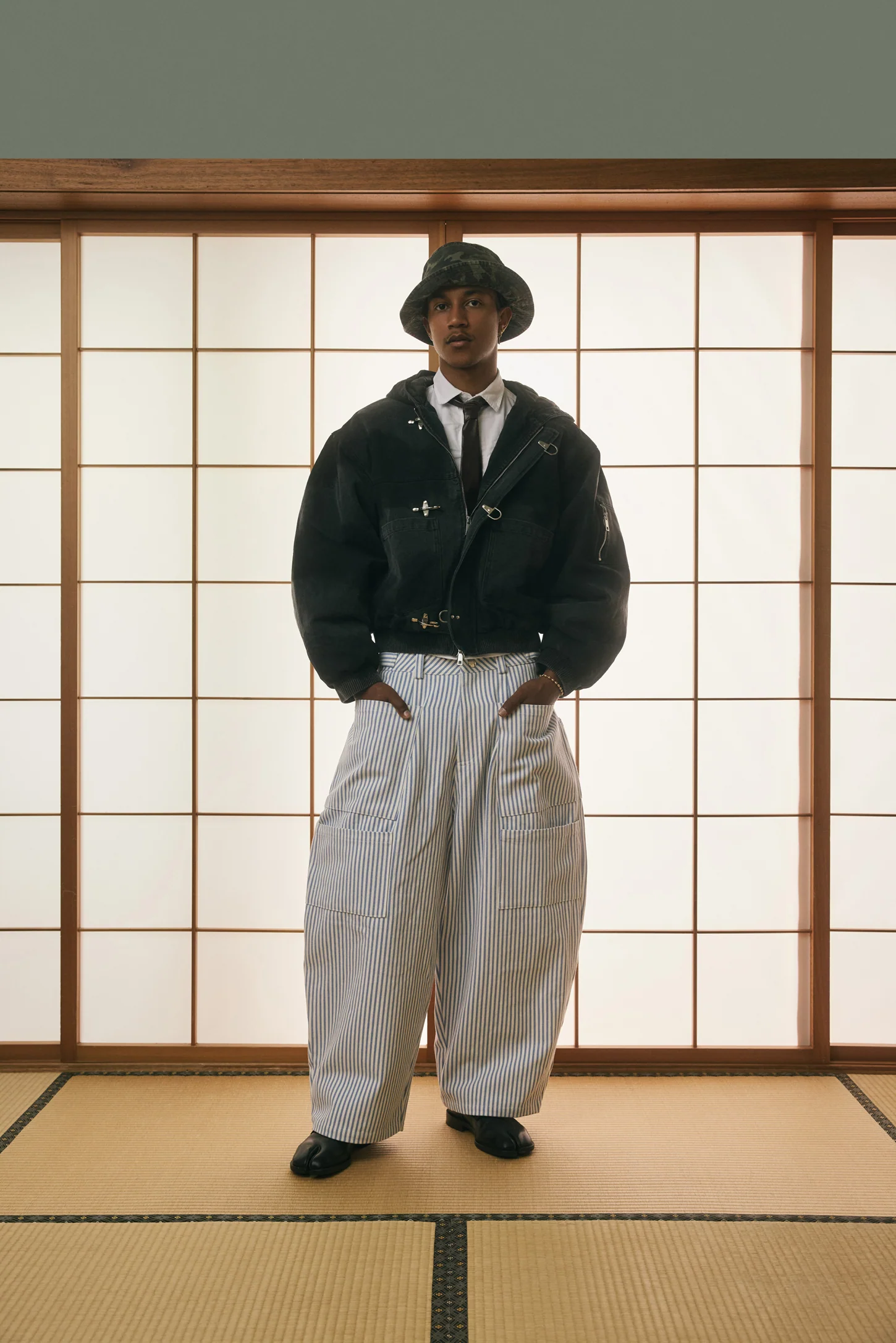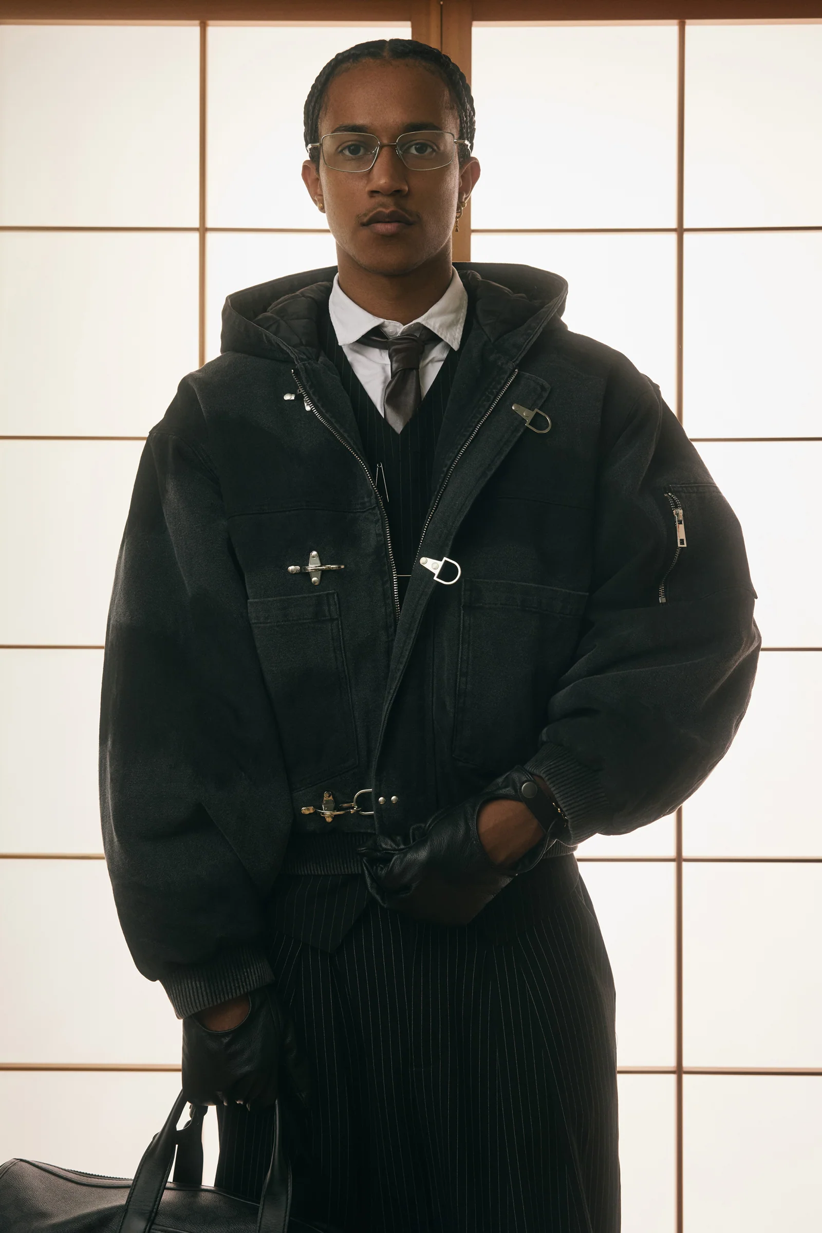 Shinzo Brand draws inspiration from Japanese precision and contemporary culture. The reflects this influence with its clean design, sophisticated proportions, and understated elegance. Subtle details, such as minimal stitching and refined hardware, create a jacket that conveys both confidence and discretion.