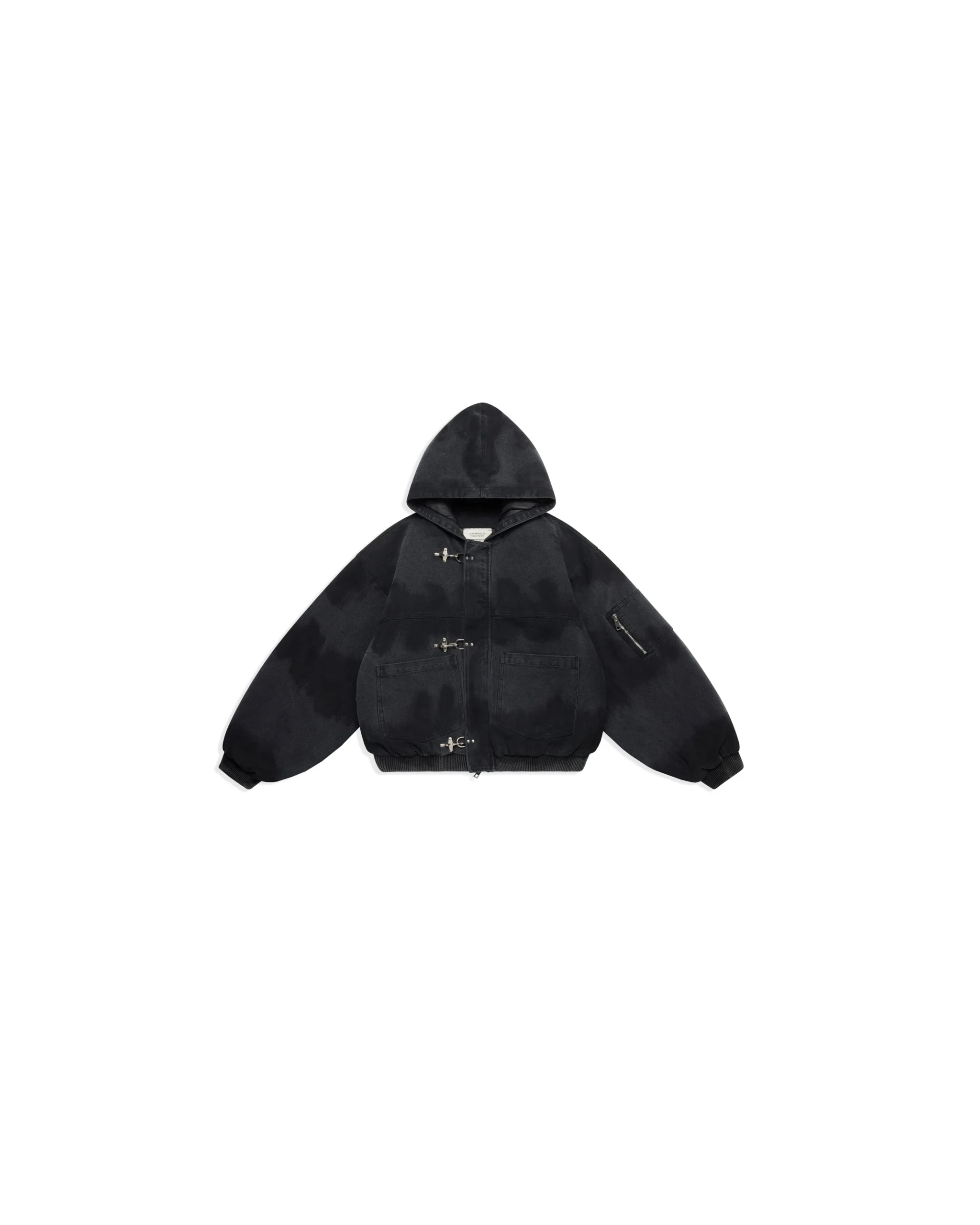 Shinzo Brand Shige 15oz Washed Black Canvas Clasp Bomber Jacket